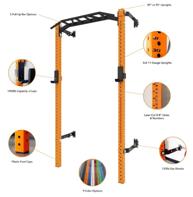 Commercial Multi-Function Wall-Mounted Folding Power Pro Squat Rack For Home And Gym Use With Multi-Grip Pull-Up Bar